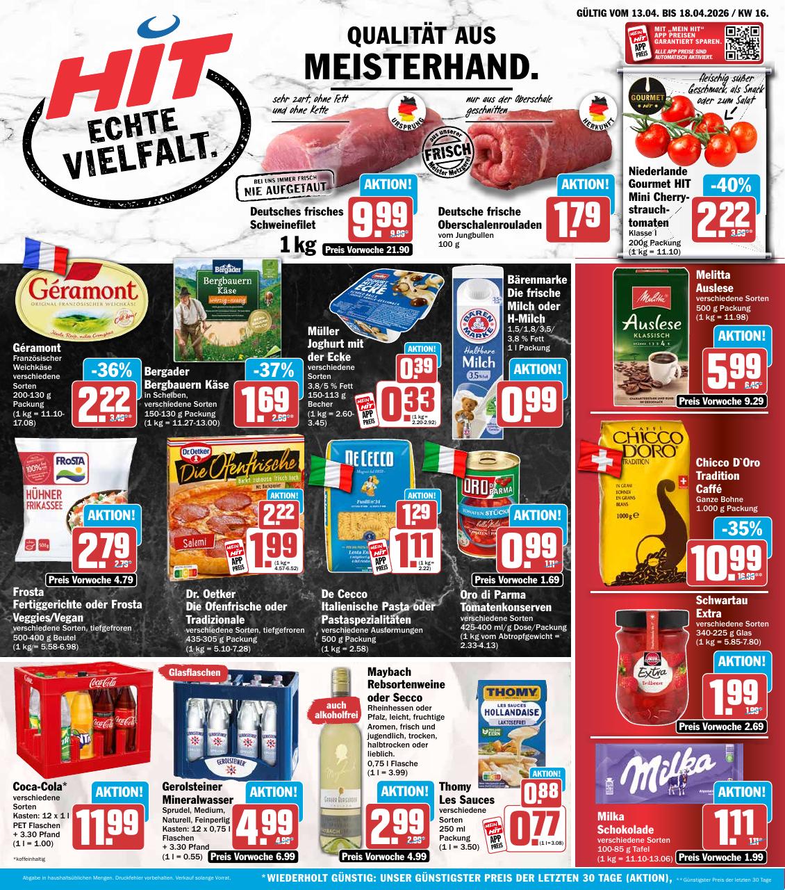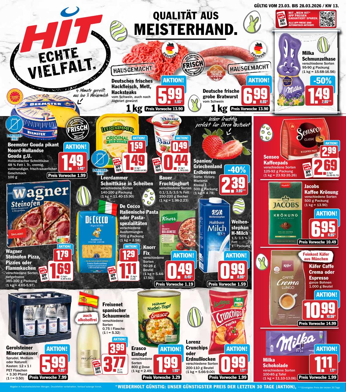 Das Produktsortiment von HIT umfasst eine Vielzahl von Artikeln, darunter frisches Obst und Gemüse, Fleisch- und Wurstwaren, Molkereiprodukte, Backwaren, Getränke, Tiefkühlprodukte und vieles mehr. HIT legt großen Wert auf Qualität und Frische, was sich in der sorgfältigen Auswahl und Präsentation der Produkte widerspiegelt. Darüber hinaus bietet HIT verschiedene Services an, wie beispielsweise Catering und Partyservice, was die Marke besonders für Kunden attraktiv macht, die nach Komplettlösungen für Veranstaltungen suchen.